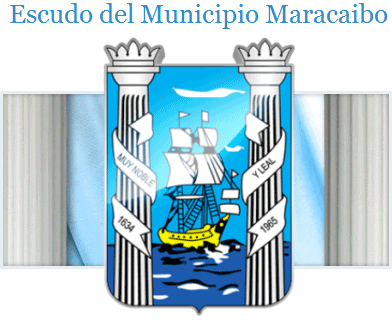 El escudo lo forman dos columnas y un navío en medio, como símbolo de la barra del Lago de Maracaibo. Las fechas del escudo de armas del municipio Maracaibo -1634 en la banda desplegada alrededor de la columna derecha y 1965 en la columna izquierda-, indican el año de la concesión del escudo autorizado por el Rey Felipe IV y el año de su readaptación por parte del Concejo Municipal del distrito Maracaibo.